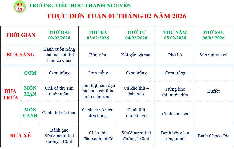 THỰC ĐƠN TIỂU HỌC