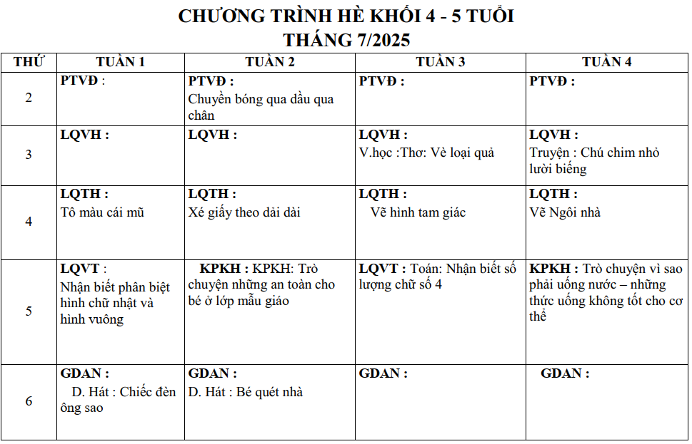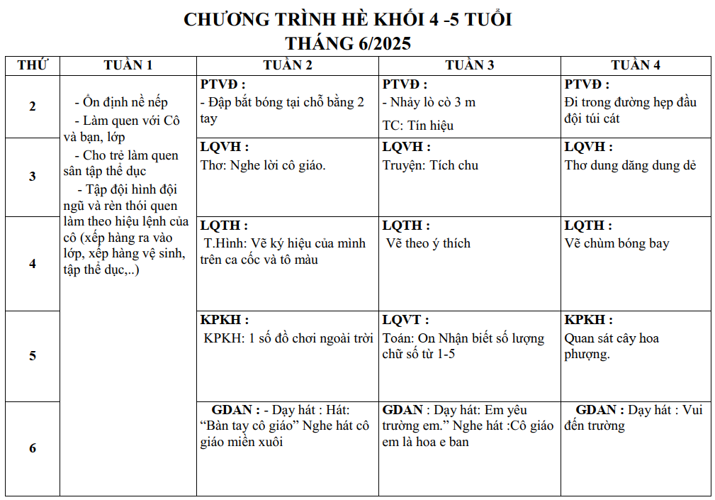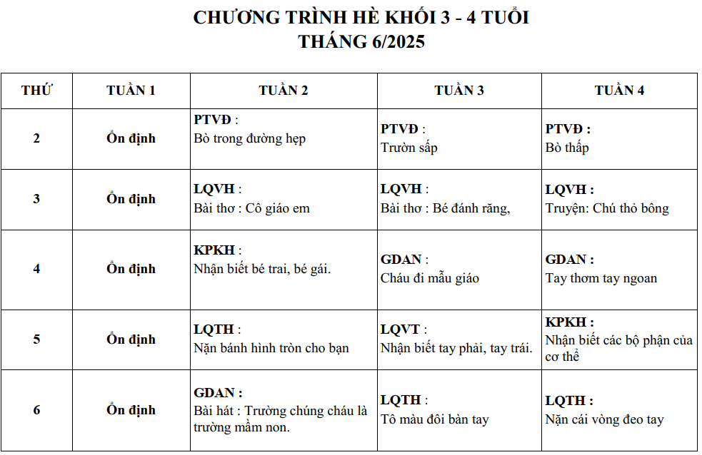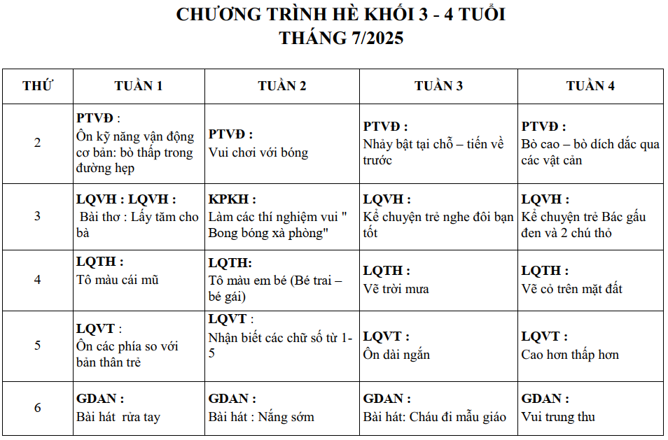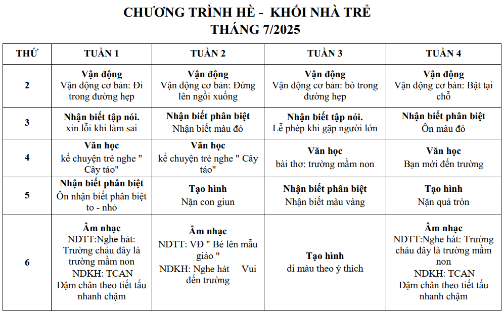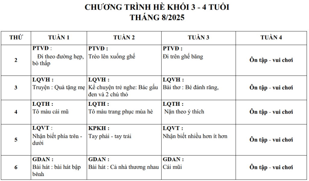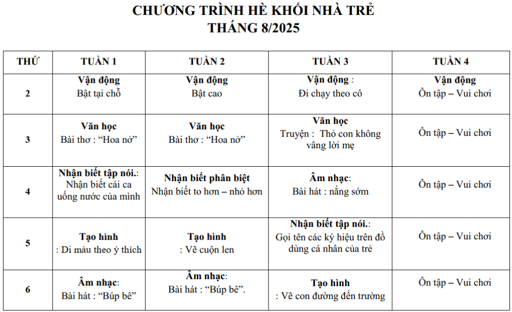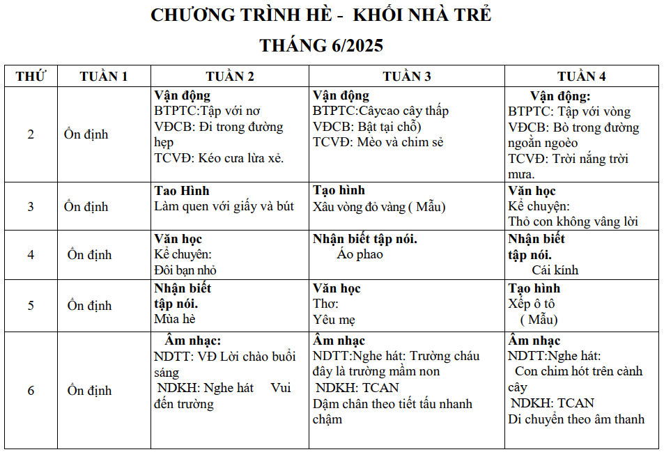 CHƯƠNG TRÌNH TUẦN 01 THÁNG 04/2025