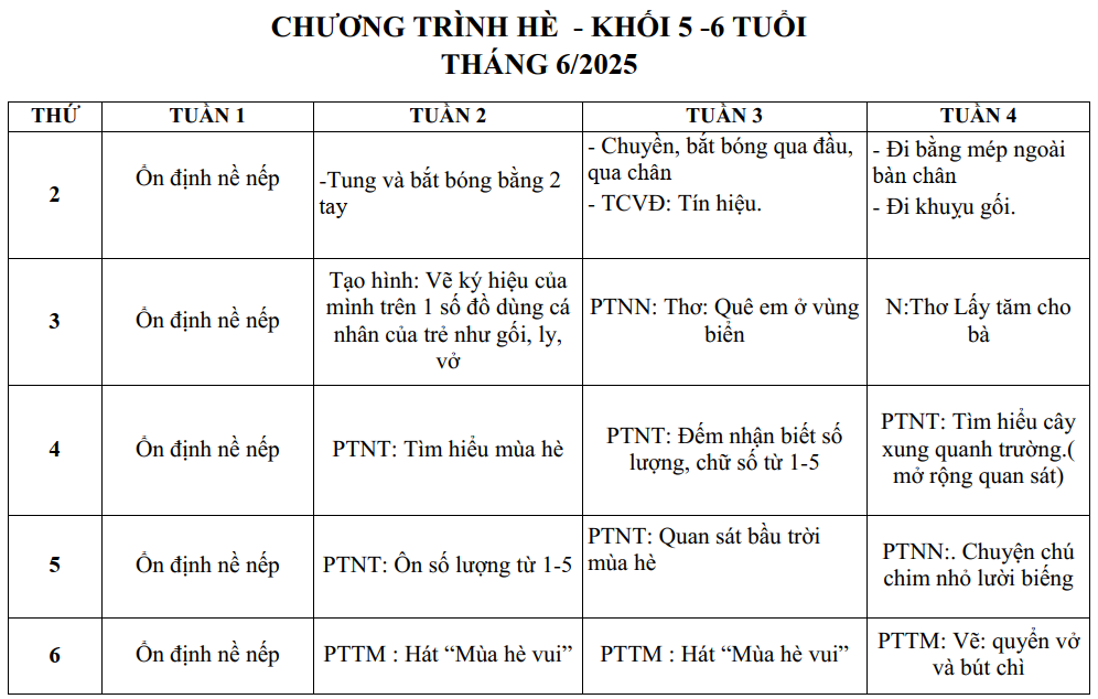 CHƯƠNG TRÌNH TUẦN 02 THÁNG 01/2025
