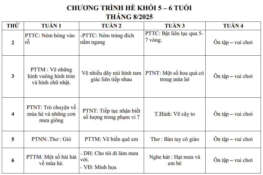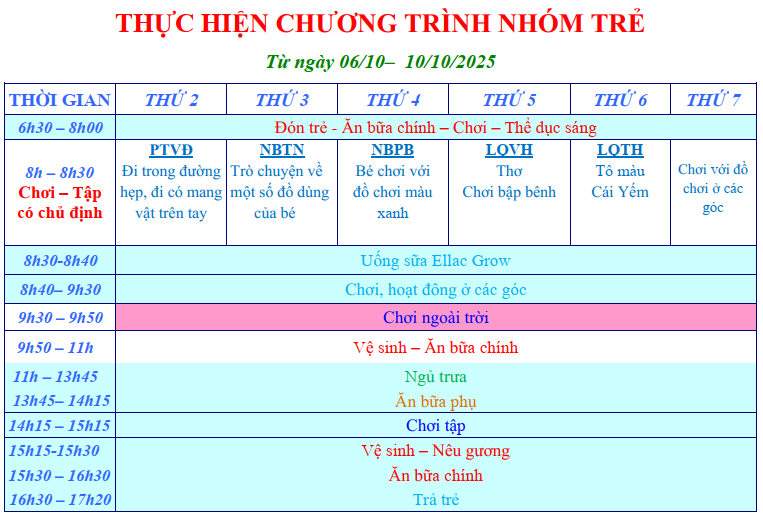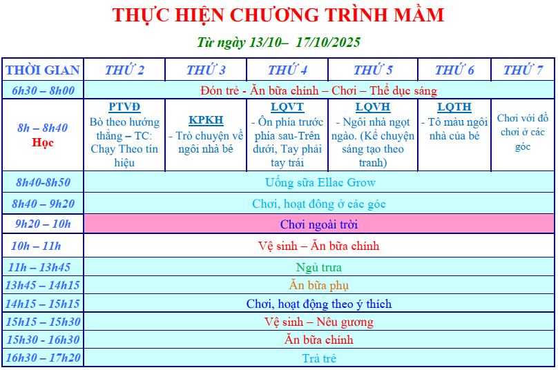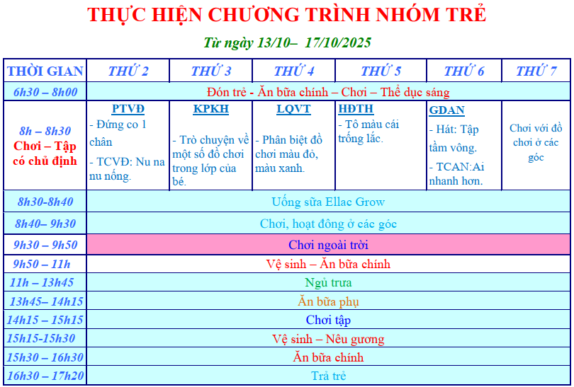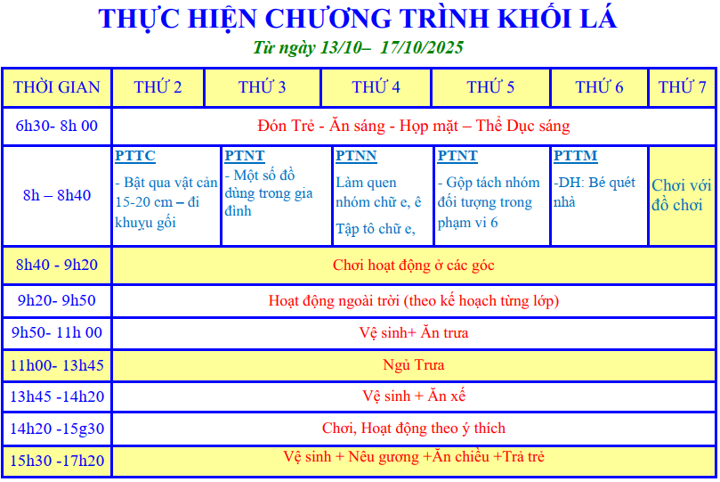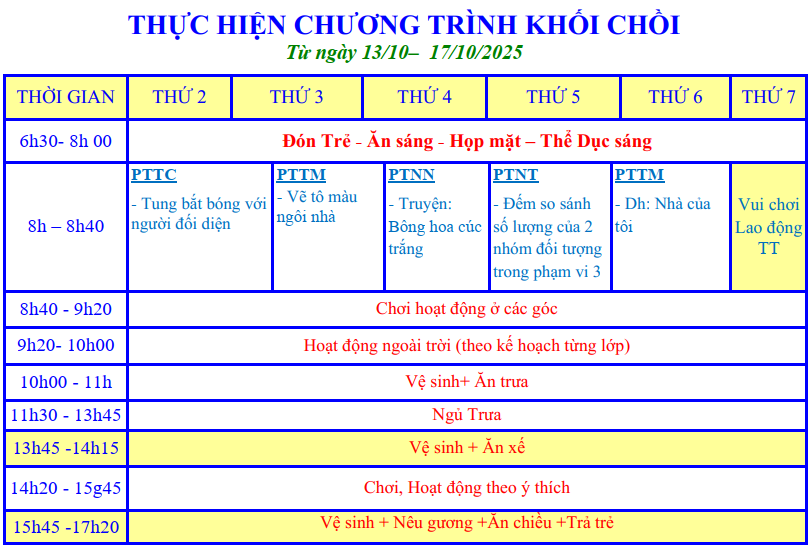 CHƯƠNG TRÌNH TUẦN 2 THÁNG 10