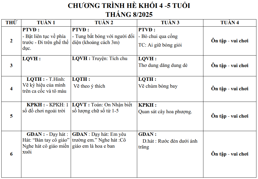 CHƯƠNG TRÌNH TUẦN 4 THÁNG 10