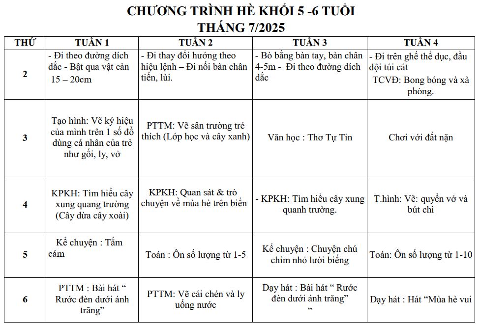 CHƯƠNG TRÌNH TUẦN 02 THÁNG 05/2025