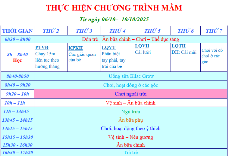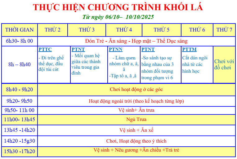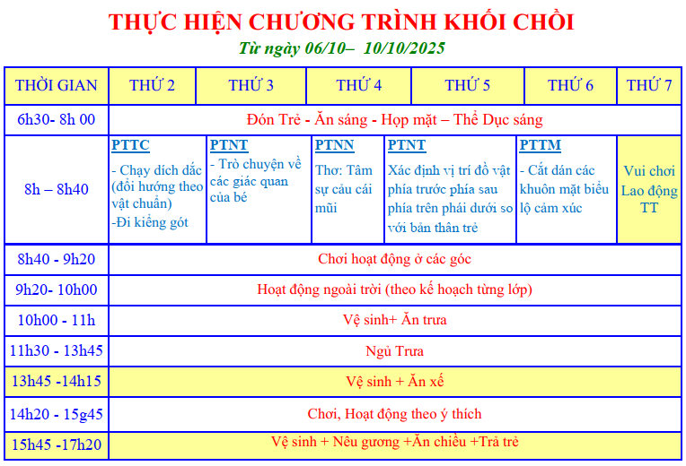 CHƯƠNG TRÌNH TUẦN 1 THÁNG 10