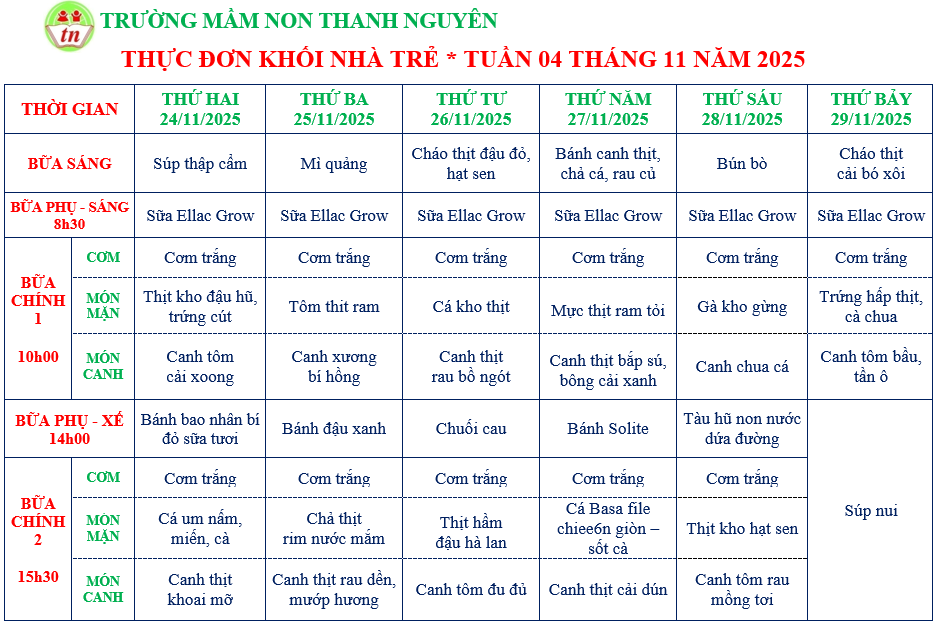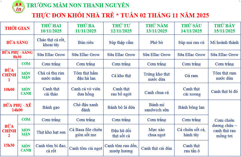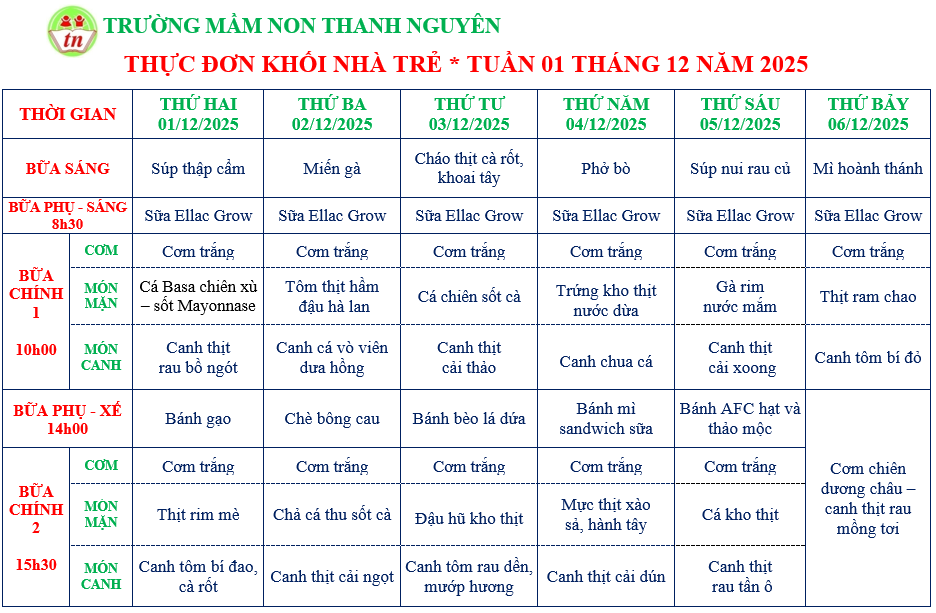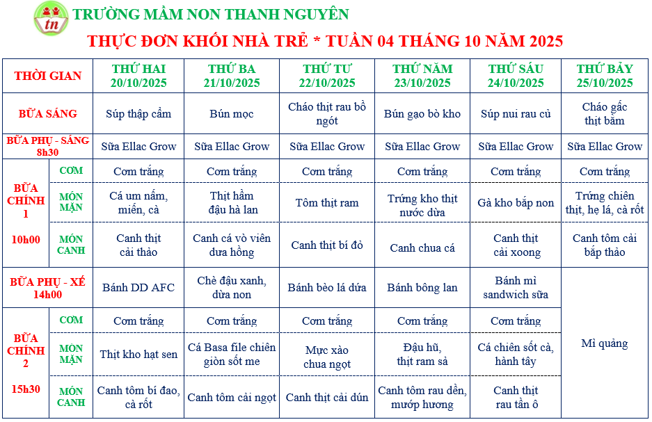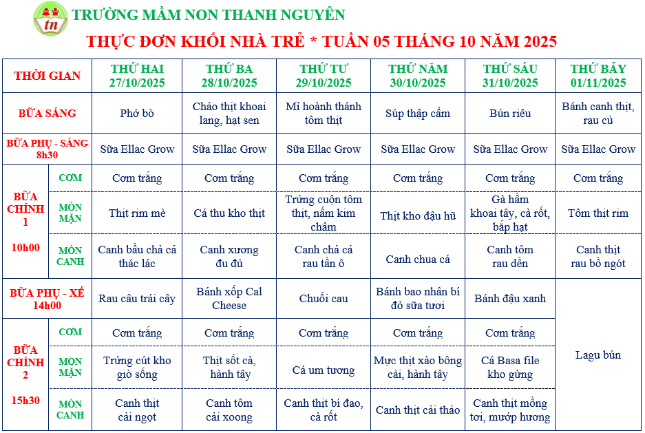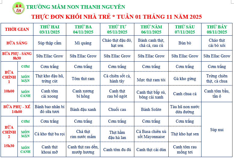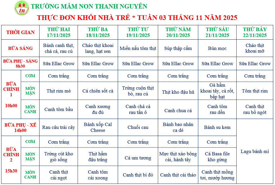 THỰC ĐƠN KHỐI NHÀ TRẺ