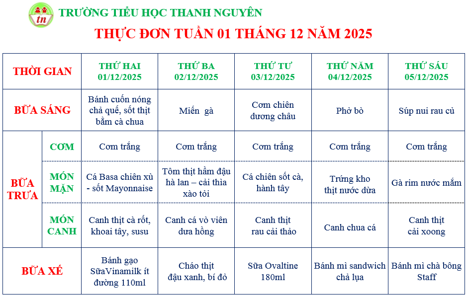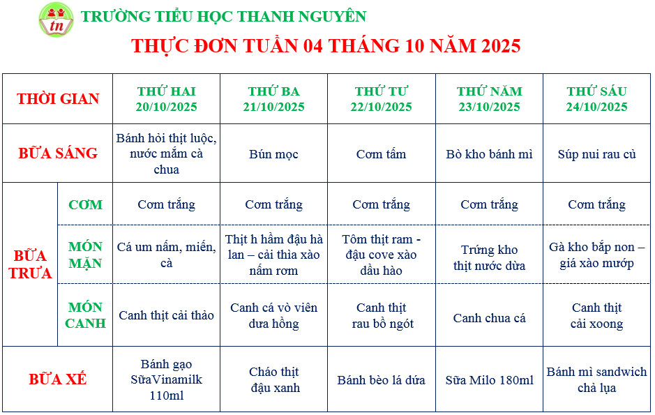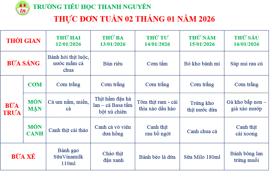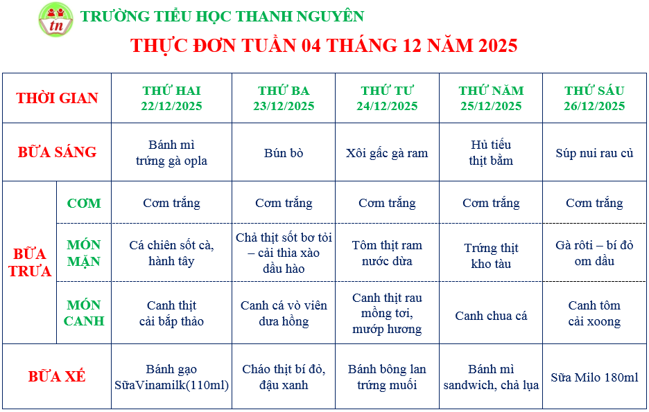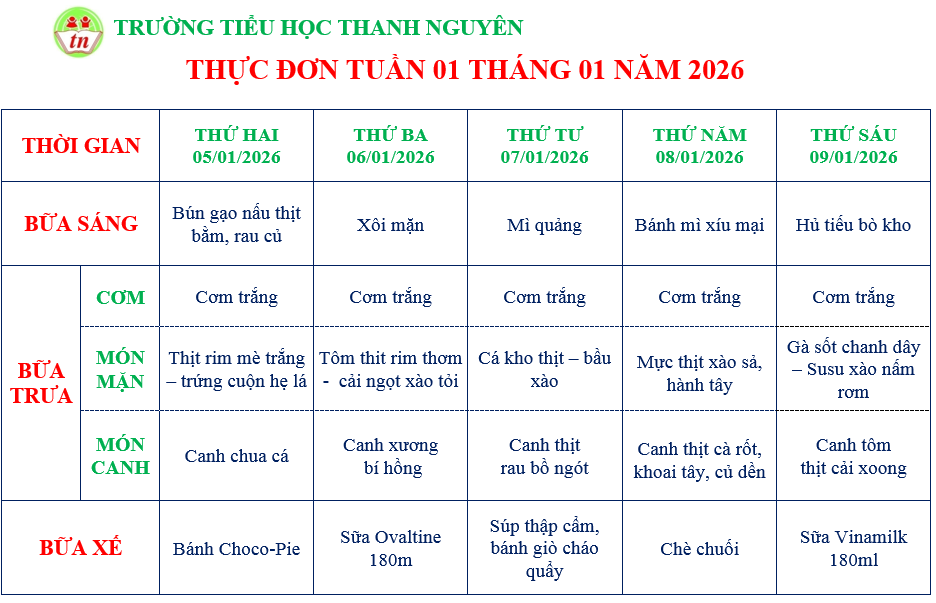 THỰC ĐƠN TIỂU HỌC