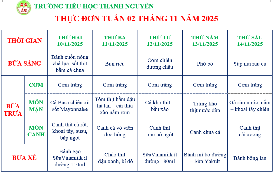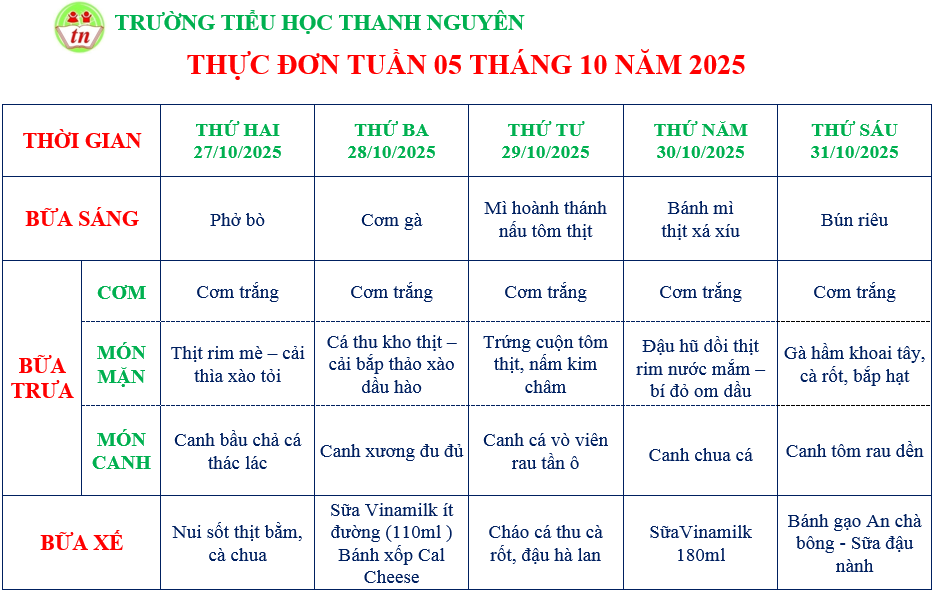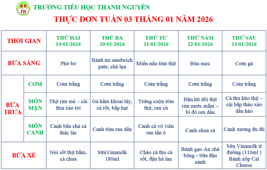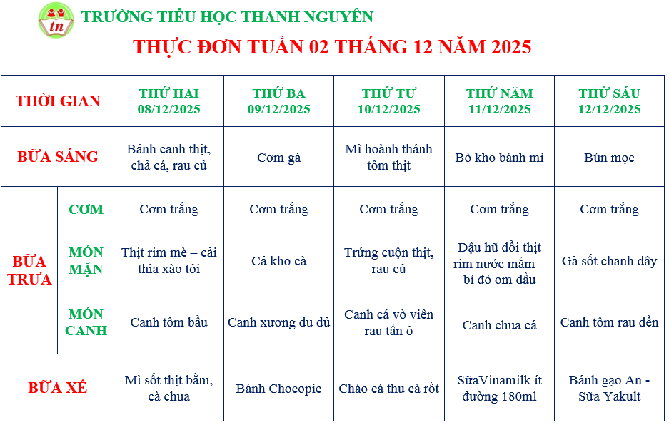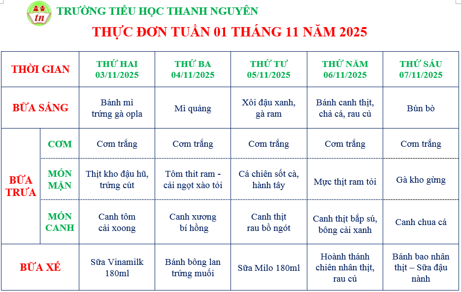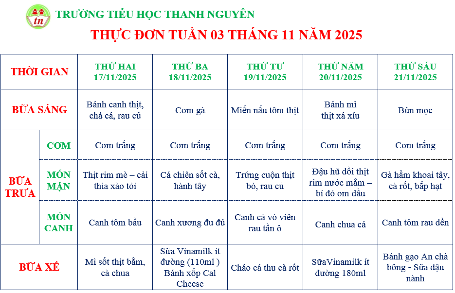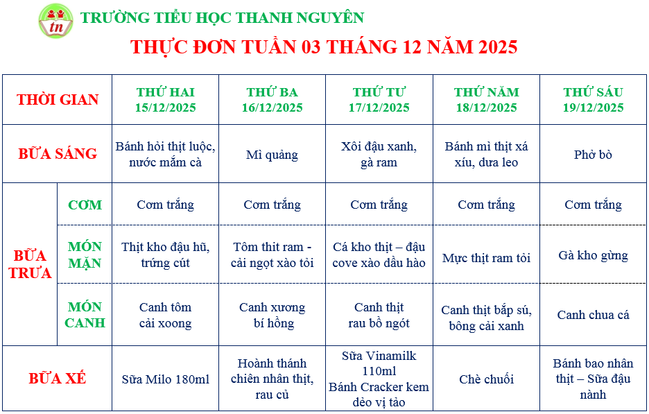 THỰC ĐƠN KHỐI NHÀ TRẺ